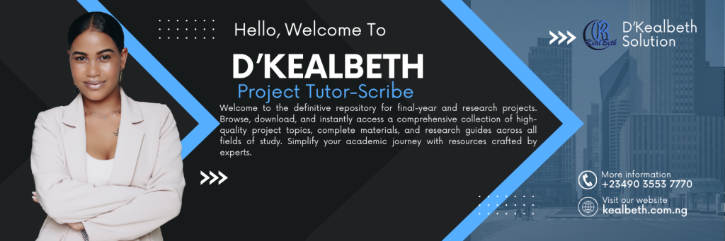 Access high-quality project topics and complete research materials for students across Nigerian tertiary institutions. This repository provides ready-to-use academic project materials, written by subject-matter experts and aligned with institutional standards.